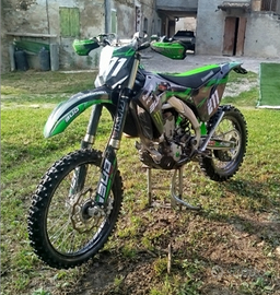 Vendo Kawasaki kxf 250 x modello 2024 immatricolata a fine 2023 . Moto con 100 ore sempre tagliandata regolarmente e tenuta con cura. Monta plastiche modello 2025 con kit Bud racing e vari accessori estetici tipo supporti motore verdi , tubi silicone bianchi , retine radiatori , tappi vari . Para motore e cruna catena axp . Appena revisionati cuscinetti leveraggio e sostituita trasmissione, mousse semi nuove e gomme 80% . Scarico fmf con qualche gioco da far vedere . La moto ora monta scarico originale e mascherina enduro. Vendo con tutti i pezzi originali comprese plastiche nuove e kit grafiche nuovo