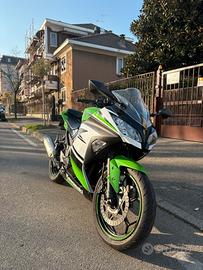 Vendo Kawasaki Ninja 300 usata con 20.000 km, moto meccanicamente perfetta e sempre ben mantenuta. Monta batteria nuova, gomme Pirelli Diablo nuove e kit trasmissione nuovo. Il motore e tutta la parte meccanica sono in ottime condizioni e pronti all'uso. La moto presenta solo danni estetici sul lato destro, senza alcun problema strutturale o meccanico. Visionabile senza problemi e disponibile per qualsiasi controllo. Documenti in regola