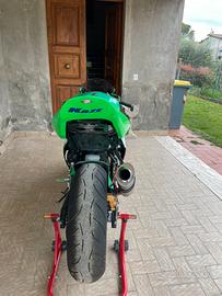 Vendo Kawasaki Ninja ZX-6R 636 del 2003, allestita pronto pista. Moto divertente, motore sostituto dal precedente proprietario ninja zxr-600 Necessita di passaggio di proprietà. Caratteristiche Configurazione pronto pista Carene in vetroresina già montate Ricambi originali per uso stradale inclusi frecce posteriori e porta targa posteriore e stop e codone posteriore. Escluse carene Perfetta per chi vuole iniziare a girare in pista senza spendere troppo Condizioni Visibile senza impegno.