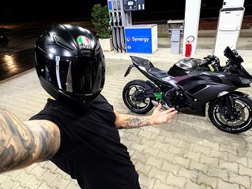 TRATTABILE. Vendesi splendido esemplare di Ninja 650 dotata di: - Tamponi para-telaio integrali - Monoposto carbon look; - Ali aerodinamiche carbon look; - Tappo liquido freni verde Kawa; - Para calore piedi verde Kava; - Manopole Dinamo verde Kawa; - Porta cellulare Quadlock; - Viti viola perlaceo (iridescenti) - Portatarga da gara Barracuda; * in aggiunta a tutti i pezzi stock.