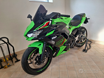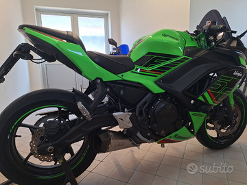 Vendo una ninja 650 del 2023 depotenziata A2 con all'attivo 40.400 km, moto sempre tagliandata in officina autorizzata da Kawasaki, rabboccata costantemente quando necessario e mai fatto pista (logicamente, che pista vuoi fare con un 650 depo)