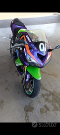 Vendo per inutilizzo, mi dispiace tenerla ferma in garage ma per mancanza di tempo devo venderla piuttosto di farla prendere polvere in garage. La moto si presenta in condizioni buone, ha percorso 52000 km in totale e funziona tutto. Le carene montate dal precedente proprietario non sono originali. Gomme Dunlop Sportmax in ottimo stato, pastiglie Brembo Rosse quasi nuove, tubi in treccia, pompa radiale BRAKING, piastra alza manubri ABM con relativo manubrio per renderla più utilizzabile (ho anche tutti i pezzi originali). La moto e corredata di scarico LEOVINCE GP omologato con certificato allegato, centralina POWER COMMANDER, filtro aria sportivo BMC, Contamarce GP. Revisione fatta l'anno scorso e tagliandata personalmente con 4 litri di olio CASTROL POWER 1 RACING 10W40, cambiate candele con le NGK IRIDIUM. Batteria nuova. Monta Corona e pignone nuovi con rapporto 14/45 (Regalo anche pignone da 15 nuovo).