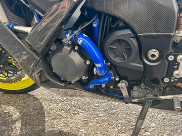 Carene full carbon, cerchi giallo fluo, scarico arrow, tubi freno in treccia, tubi silicone samco blu (che da un contrasto al colore della moto bellissimo), cambio elettronico, catena sbk corona e pignone nuovi, gomme nuove (hanno 5km), appena revisionata, pulizia iniettori e corpo farfallato, batteria cambiata da poco, candele e statore praticamente nuovi, molle forcelle, filtro da corsa, centralina aggiuntiva, pompa freno brembo, leva frizione brembo, ammortizzatori, ammortizzatore sterzo, molle forcelle, pedane arretrate, specchietti e frecce posteriori nuove, radiatore da corsa e ancora altro.