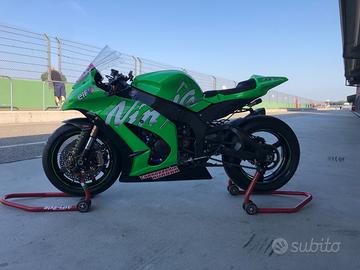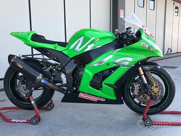 Kawasaki ninja zx10r pronto pista targata possiedo le parti originali. Doppio set di carene in vetroresina Forcelle, mono e ammortizzatore di sterzo ohlins Pinze M50 brembo Pulsantiera racing Pedane regolabili appena montate (250€) Scarico completo akrapovic Elettronica Kawasaki racing con programma per modificare qualsiasi parametro