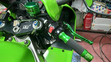 LEGGERE BENE!!! Vendo Kawasaki Zx900R Ninja per problemi alla schiena. La moto è riposta in box da circa 11 anni, parte regolarmente ma necessita della normale manuteazione per il ritorno in strada. La moto non presenta graffi, non è mai stata in pista. Monta uno scarico Arrow in allumino con Db killer estraibile e filtro sportito Kn. Anche se ferma durante il tempo (nella speranza di poterci tornare sopra) ho montato accessori in alluminio anodizzato verde, manopole, stabilizzatori, leve, serbatoi olio freni, cavalletto. In piu monta cupolino nero, frecce a led, tamponi salva carena, conta marce. Codino monoposto + sella passeggero. Disponibile i pezzi originali a parte le frecce. Insieme regalo : Batteria nuova sempre nella scatola, filtro olio, dischi frizione nuovi + guarnizione carter frizione originale kawasaki nuovo. Sono il secondo proprietario dal 2006. Allo stato attuale necessita della revisione, tagliando e gomme nuove. La moto è visibile previo appuntamento, meglio di sabato mattina abito a 25km. Il prezzo è LEGGERMENTE TRATTABILE. Altre foto e info su richiesta possibilmente WhatsApp vi risponderò appena possibile in fabbrica idurante l'orario di lavoro non ho disponibile il telefono.