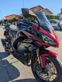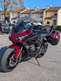 Vendo Kawasaki sx 1000 tourer del 2023 ,tenuta benissimo con garanzia fino a 2027 ,km 12000 sempre tagliandata in Kawasaki pacchetto completo manopole riscaldate,cupolino fumé maggiorato,borse laterali mai usate,accendisigari e porta cellulare,e in più aggiunto para radiatore scarico miiw omologato e portapacchi per bauletto AGIV ,unipeopetario.