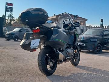 Versione Grand Tourer equipaggiata con tris di valigie originali Kawasaki e faretti di profondità