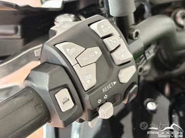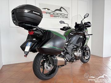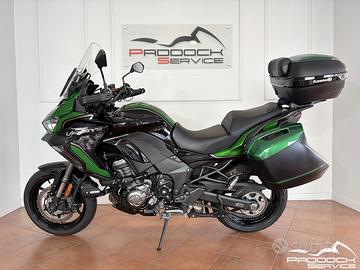 Kawasaki Versys 1000 SE Grand Tourer, immatricolazione 02/2022, con all'attivo 27.393 km. Moto in condizioni estetiche e meccaniche impeccabili. Allestimento Grand Tourer, top di gamma, completo di: sospensioni semi attive KECS, kit valigie laterali complete di borse morbide interne, bauletto posteriore completo di borsa morbida interna, faretti di profondità led, protezioni motore laterali, manopole riscaldate, cavalletto centrale, paramani, KCMF, KQS quick shifter, smartphone connectivity, fari full led, presa 12v, strumentazione TFT, ride by ware, parabrezza regolabile manualmente, cruise control, led cornering light, riding mode, KIBS Abs, KTRC traction control. Pneumatici con battistrada residuo pari al 70%. Tagliandi regolari effettuati presso rete ufficiale.