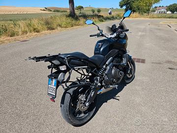 Vendo la mia Kawasaki Versys 650 ABS del 2009, in colorazione nera totale. La moto è in ottime condizioni, sia estetiche che meccaniche, ed è stata sempre mantenuta con grande cura. Nessun incidente. Tagliando effettuato da poco. Nuove candele all'iridio. Moto completamente originale, senza modifiche invasive. Accessori montati: Set valigie completo: 2 laterali originali Kawasaki rigide (con chiave) + 1 top case posteriore in alluminio da 65L con interno in pelle e agganci per borse aggiuntive. Comfort per i viaggi: Cupolino maggiorato GIVI con estensione (protezione totale dal vento), paramotore laterali, manopole riscaldate Oxford e supporto per telefono/Telepass integrato sul cruscotto. Piastra GIVI M5 universale per bauletti (attualmente smontata). INCLUSI NELLA VENDITA: Coprisella estivo Tucano. Mantenitore di carica per batteria. Seconda chiave originale. Tutta la documentazione. La moto è pronta all'uso: olio a livello, gomme gonfie e funziona in modo impeccabile. Perfetta per chi cerca un'ottima avventuriera, affidabile e già equipaggiata per ogni viaggio. Disponibile per ispezione e prova (previo accordo). Se volete chiamare, mandaremi prima un SMS o Whatsapp per favore, sto ricevendo tante chiamate di spam ultimamente e potrei non rispondere 🙏