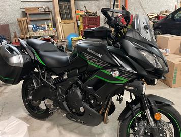 Vendo bellissima Kawasaki versys 650 colorazione special edition, come nuova con soli 18000km accessoriata con valigie laterali originali in tinta apribili con un unica chiave (quella della moto) comprese di borse morbide originali interne, faretti, paramani, borsetta serbatoio, allarme, parafango ruota posteriore, griglia para radiatore, tagliandata, gomme al 70%, kit trasmissione nuovo did oro non presente in foto poiché appena messo da 1000km, sempre tenuta in garage con telo coprimoto originale Kawasaki, doppie chiavi, io sono il secondo proprietario, vendo per inutilizzo, solo gente interessata e non perditempo