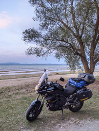 Vendo per passaggio a cilindrata superiore, Kawasaki Versys 650, immatricolata nel luglio 2011, di cui sono secondo proprietario. Acquistata nel luglio 2020 con circa 15000 chilometri, tenuta benissimo dal precedente proprietario (tranne graffi superficiali su carena sinistra)