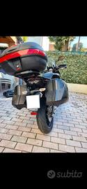 Descrizione: Vendo splendida Kawasaki Versys 650 in condizioni impeccabili, colorazione Black/Red. La moto è sempre stata tenuta in garage, curata maniacalmente e utilizzata principalmente per uscite domenicali e turismo a medio raggio. Meccanica: vendo con tagliando appena eseguito. Dati Tecnici e Manutenzione: Chilometraggio: 32.750 km originali. Pneumatici: Pirelli Diablo Rosso III (ottimo stato, garantiscono un'aderenza superiore). Trasmissione: Kit catena (finitura oro), corona e pignone in condizioni ottimali. Revisione: Regolare e valida fino a Maggio 2027 (appena eseguita, massima serenità per l'acquirente). Allestimento e Accessori (Valore oltre 1.200€): Set Viaggio Completo: Valigie laterali rigide originali Kawasaki in tinta e Bauletto posteriore Givi con poggiaschiena per il passeggero. Protezione paramani integrali, protezioni laterali paramotore e protezione radiatore. Comfort: Parabrezza maggiorato regolabile (ottima protezione dall'aria in autostrada). nel pacchetto c'è anche il suo originale. Dettagli Sport: Portatarga sportivo, frecce a LED, finiture rosse sui cerchi e dettagli "Braking" sulle forcelle. La moto è pronta all'uso, non necessita di alcun lavoro. È il compromesso perfetto tra una sportiva e una tourer, agilissima nel traffico e comodissima nei viaggi in coppia. Prezzo: 5.400€ trattabile dopo visione Passaggio di proprietà: a carico dell'acquirente. Luogo: Reggio Emilia emilia Disponibile per qualsiasi prova o visione con vostro meccanico di fiducia. No perditempo o offerte ridicole.