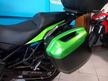 Accessori/note: BELLISSIMA E FULL OPTIONAL KAWASAKI VERSYS 650. VERSIONE GRAN TURISMO COMPLETA DI TUTTO L'ALLESTIMENTO E GLI ACCESSORI KAWASAKI. CORREDATO DI TRIS BAULETTI IN TINTA CON BAG INTERNE DEDICATE, PORTA USB DI RICARICA CON VOLTMETRO, PRESA ACCENSI SIGARI, PORTATELEFONO, FARETTI DI PROFONDITA' CON IMPIANTO DEDICATO, SET PARAMANI E CUPOLINO ORIENTABILE. IL VEICOLO E' APPENA STATO MANUNTENZIONATO E CORREDATO DI NUOVO KIT TRASMISSIONE E CAMBIO OLI. PRONTA PER L'UTILIZZO IN UN'ACCATTIVANTE LIVREA KAWASAKI.