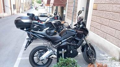 Kawasaki Versys 650 in ottime condizioni accessoriata con fari full led, faretti di profondità a led, portatelepass, paramani, piastra per bauletto posteriore della Givi e barre paramotore. Tagliandata a maggio e gommata al 90%