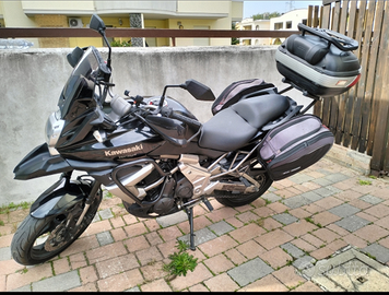 Bellissima Kawasaki Versys personalizzata con kit con becco anteriore, faccette laterali e copri motore acquistati da poco al costo di euro 500 escluso il montaggio, km 35.000 appena fatto il tagliando completo con candelette e cambio pastiglie freni anteriori e posteriori, appena sostituita nuova batteria, bauletto posteriore e borse laterali. Prezzo non trattabile.
