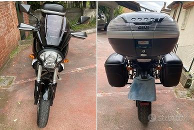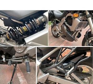 Modello prima serie (la più iconica) con cerchi argento e logo sul cupolino, tenuto da amatore in eccellenti condizioni generali, full optional e pronto a viaggiare. Sono inclusi nel prezzo richiesto i seguenti extra (costo totale al nuovo oltre 2.000 euro): •Kit sospensioni HYPERPRO STREET BOX (molle progressive e olio forcella, mono posteriore pluriregolabile), migliora drasticamente il comportamento della moto rispetto alle basiche sospensioni originali (fornite) •Bauletto Givi V46 con cover in tinta e staffa supporto •Valigie laterali Givi E21 (ingombro limitato e carica dall’alto) con telaietti supporto •Borsa serbatoio Famsa divisibile in 2 con tracolle e attacco magnetico •Cupolino maggiorato fumé originale Kawasaki •Cupolino maggiorato touring Givi D405ST •Paramani Acerbis •Griglia radiatore con logo •Parafango ruota posteriore •Piastra cavalletto Givi •Gommino protezione leva cambio •Supporto cellulare custom (uso navigatore) Stato d’uso: •Secondo proprietario dal 2012 •Scadenza revisione 05/2027 •Scadenza bollo 01/2027 •Triple chiavi •Tagliandi presso rete ufficiale Kawasaki con fatture, ultimo a maggio 2025 •Kit catena-corona-pignone nuovo a 25.000 km •Pneumatici Dunlop Mutant al 50% circa •Custodita in box privato, usata solo nei mesi estivi prevalentemente per gite fuori porta •No incidenti, mai caduta a terra Come dal nome la moto è estremamente versatile: leggera, facile e comoda con la potenza giusta per godersela in tutti gli ambiti: città, gite, viaggi, ecc. compreso leggero fuoristrada (strade bianche). Qualità ed affidabilità giapponese con bassi costi di gestione. NB: l prezzo richiesto è stato così valutato: 2.950 moto nuda + 1.000 accessori al 50% (non venduti separatamente). Non esiste a contattarmi per ulteriori informazioni, offro e richiedo massima serietà.
