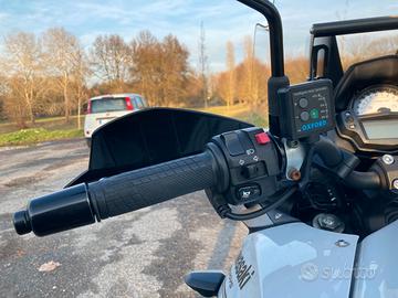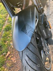 Kawasaki Versys 650 Tourer Plus del 2020. Di serie: Antinebbia, borse laterali 28 lt. (possono contenere entrambe un casco integrale) e borse interne, paramani. Installati post acquisto: manopole riscaldate, cavalletto centrale, cupolino Givi maggiorato (cupolino di serie come nuovo fornito), porte USB, traversino per cellulare navigatore. Sempre tagliandata, sostituito circa un anno fa kit catena-corona-pignone. Parafango anteriore rotto in due punti ma perfettamente funzionante e non rumoroso (riparazione come da foto).