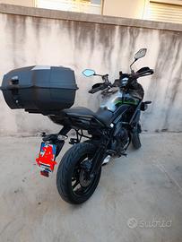 Vendo bellissima Kawasaki Versys 650 in versione Tourer Plus, immatricolata nel 2019. La moto è stata curata in ogni minimo dettaglio ed è pronta per viaggiare, ideale per chi cerca affidabilità e comfort. Dettagli Principali Chilometraggio: 66.000 km Stato pneumatici: Ottimo stato (battistrada ancora profondo) Condizioni generali: Maniacali, sempre rimessata in garage e regolarmente manutentata. Allestimento e Accessori inclusi La moto è in configurazione completa per il turismo: Borse laterali rigide originali Kawasaki (in tinta con la carrozzeria). Borse interne morbide originali (comodissime per i viaggi). Borsone centrale aggiuntivo ad alta capacità per massimizzare il carico. Faretti supplementari a LED di serie per una visibilità ottimale. Paramani e protezione serbatoio. Prezzo e Condizioni di Vendita La moto è visibile per qualsiasi prova o controllo da parte del vostro meccanico di fiducia. IMPORTANTE: Per motivi di sicurezza e privacy, le trattative avverranno esclusivamente tramite la messaggistica di Subito. Lo scambio del numero di telefono e il contatto diretto avverranno solo dopo un primo incontro conoscitivo di persona. Prezzo: € 4.400 trattabili