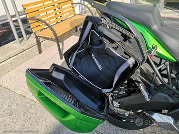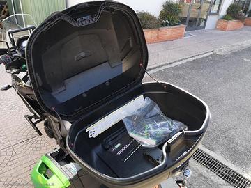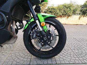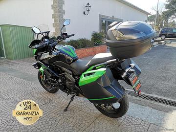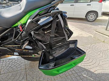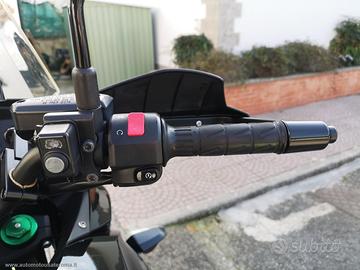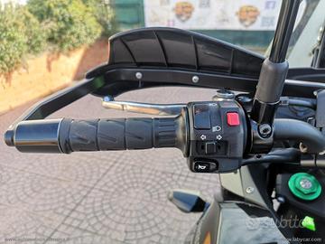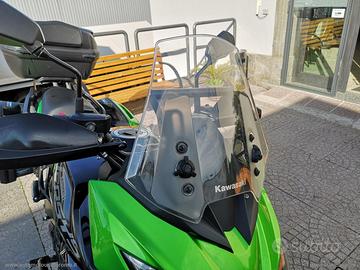 Accessoriato con: Cupolino regolabile, barra porta navigatore, presa Usb, faretti di profondità e paramani Kawasaki, nottolini alza moto, paramotore.