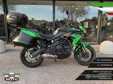 Splendida Kawasaki Versys 650 versatile e confortevole, ideale sia per l'uso quotidiano sia per i viaggi a medio-lungo raggio, accessoriata con tris di borse e telaio paramotore, diventa una moto ancora più completa e pronta per il turismo.