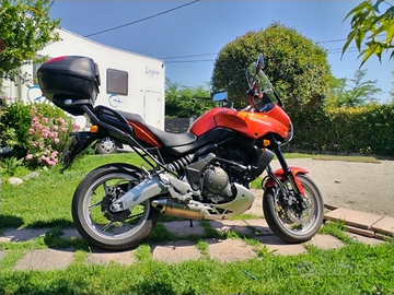 Vendo Kawasaki Versys 650, anno 2007, colore rosso con 31000 km originali, gomme sostituite da poco, tagliando fatto, cupolino maggiorato e bauletto posteriore. Moto tenuta sempre al coperto.