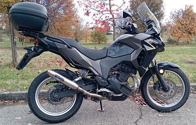 Kawasaki versys x 300 in eccellenti condizioni, nessun graffio. Pari al nuovo. Superaccessoriata con paramani originali kawasaki, plexiglas maggiorato Givi, bauletto da 50 litri per 2 caschi integrali, silenziatore omologato GPR deeptone con certificato di omologazione, riser per arretrare il manubrio piu originali, sella confort fatta da un sellaio professionista, doppia presa USB con voltmetro integrato, gomme al 95% pirelli scorpion, oluo e filtri sostituiti a 18000 km, catena pignone e corona did nuovi con pignone da 15 e corona 44, disponibili anche pignone 14 e corona 45 e 46. Supporto per GPS o telefono, coprimanopole in spugna rimovibili. Parabrezza e scarico originale disponibili e pari al nuovo. Disco anteriore brembo che migliora notevolmente la frenata, disponibile anche l'originale. Revisione valida fino al 2027. Moto perfetta e assicurata, disponibile per qualsiasi prova anche con il vostro meccanico di fiducia. Moto divertente, agile e molto leggera, comoda sia in città che in autostrada. Valuto permuta solo con moto enduro.
