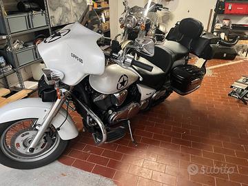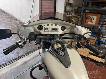 Vendo per passaggio a cilindrata maggiore Kawasaki VN 900 Classic molto personalizzata , come da foto , tutto perfettamente funzionante , impianto eseguito a regola d'arte protetto da relè e fusibili , sostituito ammortizzatore posteriore con uno più performante , sostituito molle forcelle per diminuire il caratteristico affondamento , centralina ottimizzata per una coppia migliore ecc.ecc.