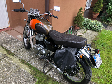 Per amanti del vintage vendo per non utilizzo moto customizzata perfetta in ogni dettaglio,sempre tagliandata e tenuta in maniera maniacale. Revisione fino a luglio 2027. Completa dei pezzi originali e borse laterali in pelle.