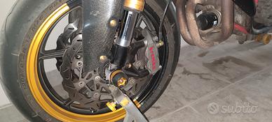 La moto è dotata di pompanti bitubo e mono bitubo xf31, pedane regolabili, pompa freno e frizione accossato, contamarce,centralina e modulo di anticipo Power Commander 3, radiatore nuovo maggiorato, tubi siliconici, scarico akra, pinze brembo e quasi tutta in carbonio come si vede in foto.....nn mi servono soldi né altre moto né ho già 2 quindi....non proposte oscene....volete spendere meno prendete le altre presenti sul sito.......nessuna prova su strada ripeto la moto funziona e la uso...vista e piaciuta