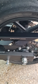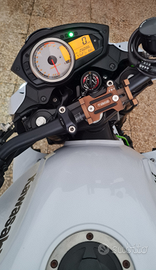 Dotata di scarico completo SC project con originale omologazione, portatarga, frecce led, paramotore, paracatena, specchietti, manopole e leve barracuda, faro a led. Revisione valida fino al 2026.