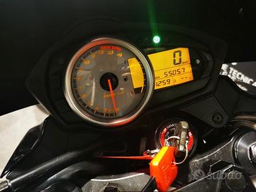 Moto in ottime condizioni allestita con diversi accessori tra cui Cupolino Fumè scuro originale, varie parti in Carbonio, Protezioni antigraffio in silicone da serbatoio, Tamponi para telaio, Portatarga corto con frecce piccole sia anteriori che posteriori ed infine Leve Freno e Frizione flessibili anti rottura marchiate Kawasaki. Per ulteriori informazioni contattaci allo oppure vienici a trovare in Concessionaria, ti aspettiamo! Cordiali saluti dallo Staff della MotoBodema.
