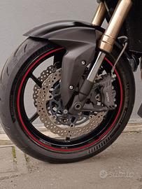 Kawasaki Z 750 R Black Edition anno 2012 Unico proprietario, 43093km EURO 3 77,70kW = 106CV versione R con forcellone più sportivo e impianto frenante maggiorato rispetto alla versione standard Moto in ottime condizioni sempre tagliandata regolarmente in officina autorizzata e con documentazione dei lavori a corredo Tagliandata a Maggio 2025 con olio motore filtro olio e la revisione della forcella anteriore E' stata equipaggiata con vari accessori tra cui: Contamarce Healtech Portatarga Barracuda Frecce anteiori e posteriori Led Barracuda Specchietti in alluminio Barracuda Tamponi paratelaio Evotech Scarico Arrow omologato con fondello in carbonio centralina aggiuntiva Rapid Bike EVO filtro aria racing BMC Maniglie per paseggero Portatelefono e presa USB cupolino maggiorato MRA disponiamo del silenziatore,specchi,freccie, portatarga e cupolino originale Monta delle Michelin Power 6 pressochè nuove Revisione in scadenza a Giugno 2026 Garanzia di 12 mesi