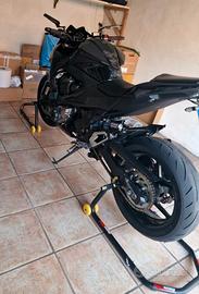 Ho appena fatto il tagliando personalmente (olio motore motul 7100 10w 40) filtro olio hiflo, pulizia e oliatura filtro aria BMC sport in cotone, candele nuove, fanale anteriore nuovo di zecca, revisione ammortizzatori fatta prima di mettere la moto a riposo per il periodo invernale, tenuta sempre sui cavalletti. È dotata di scarico SC PROJECT GP M2 (400€), portatarga barracuda con illuminazione led (150€), frecce led barracuda nero fumo (90€), protezioni motore e protezioni per le cadute da fermo o a bassa velocità.