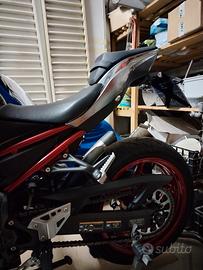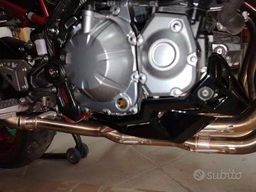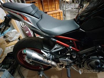 La moto monta scarico completo sc in titanio e carbonio con filtro bmc, portatarga barracuda e frecce, luci led, specchietti rovesciati, para radiatore, fasce laterali cubicate in carbonio, e tanti altri accessori.