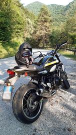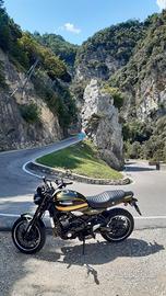 La modern classic che richiama la mitica Kawasaki Z1 naked del 1972. La moto si presenta in ottimo stato senza segni e sempre mantenuta lucida e pulita. Senza difetti. Colore metallic green. Il motore è quello della stradale Z900 ma depotenziato a 111 CV per aumentare la coppia in basso! Maneggevole e divertente da guidare come poche. La batteria è ancora la sua originale mantenuta carica con apposito scarica/carica batterie ad ogni inverno. Insieme alla moto lascio gli optionals cavalletti alza moto anteriore e posteriore. La moto porta lo scarico originale dal sound pieno ed emozionante che solo i 4 cilindri riescono a conferire.