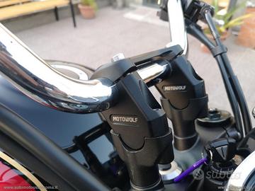 Accessoriata con: Griglia radiatore, estenzione cavalletto, battitacco in ergal, tappo radiatore, rise (Motowolf).