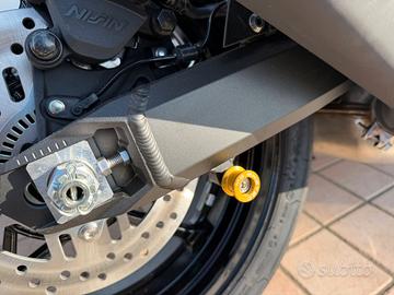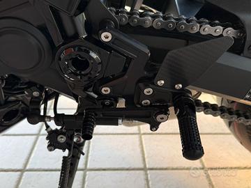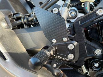 Pedane regolabili (476 euro), Porta Targa Corto (129 euro), Specchietti bar end (158 euro), Leve corte (170 euro), Tappo serbatoio (97 euro), Coperchio Vaschetta Freno anteriore (42 euro), tappi fori specchietti (25 euro), Tappo serbatoio Freno posteriore + Olio motore (52 euro), Nottolini cavalletto (18 euro) => Totale accessori 1.168 euro