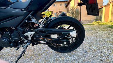 Vendo causa inutilizzo Kawasaki Z400 del 2022, allestimento di serie. 8339 km. Tagliandi certificati effettuati sempre in concessionaria ufficiale. Mai caduta o incidentata, nessun difetto, gomme in ottimo stato. Sempre tenuta in garage. Presente kit per rialzo manubrio e supporto per telefono. Prezzo TRATTABILE.