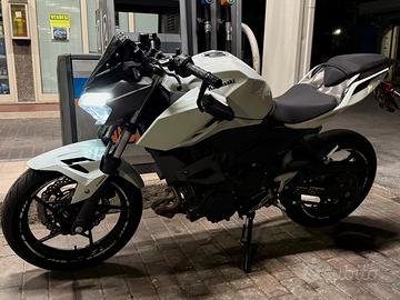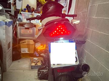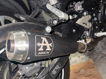 La moto è sempre stata tenuta in garage. Gomme cambiate a circa 10000 km, insieme a olio e filtri. Pastiglie freni appena cambiate. Secondo proprietario. Vendita per poco utilizzo e cambio moto. Il difetto presente è stato causato da una caduta da fermo in garage. Possibilità di guidarla con patente A2. La moto presenta la seguenti modifiche. - Terminale Arrow ProRace dark in acciaio inox compreso di dbkiller facilmente smontabile. - Frecce Led Lampa sia posteriori che anteriori con appositi adattatori e resistenze. - Portatarga Lightech regolabile, compreso di luce targa a led e catadiottro. - Specchietti endbar Suparee. - Gomme Metzeler m7rr Fornisco pure pezzi originali. Prezzo leggermente trattabile. Possibilità di comprare la moto senza scarico aftermarket, ad un prezzo minore. Per ulteriori informazioni contattarmi.