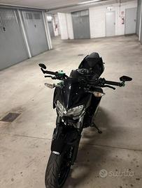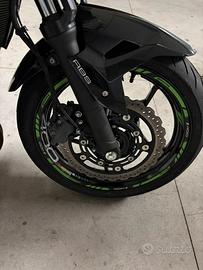 Monta : bilancini manubrio Verdi, adesivi ruote Kawasaki racing , adesivi vari in resina , tappo serbatoio liquido freno anteriore,leve z400 clutch & brake settabili, scarico Mivv GP PRO black inox,copri carter GB racing ,specchietti a manubrio frecce led e portatarga Evotech . Tutto omologato con tessera anche di omologazione scarico.