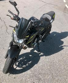 Vendo per passaggio ad altra moto Kawasaki Z650 Abs del 2019 in ottimo stato, mai incidentata, usata solamente per gite domenicali, mai in pista. Vendo compresa di equipaggiamenti: -Scarico completo Leovince (Omologato) -Frecce ant/post dinamiche -Fari ant/post a led -Manopole Barracuda -Portatarga sportivo -Cupolino nero lucido (rimovibile) -Protezione per il radiatore -Specchietti sportivi Fornisco anche tutti i ricambi originali; Gomme Pirelli Diablo Rosso II montate 05/2023; Batteria NUOVA montata 05/2025; Moto tagliandata a Maggio 2025; Bollo pagato fino al 31/12/2026; Revisione valida fino a Maggio 2027; A parte vendo telaietti portaborse.