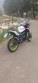 Vendesi kawasaki Z650 2021 candy lime green con 11000 km con tagliando appena fatto, scarico completo Arrow con terminale in carbonio,portatarga lightech nuovo , kit trasmissione D.I.D. appena messo, tamponi paratelaio e paraforcella sw-motech, pedane e manopole barracuda, specchietti e leve z650 amazon e vari adesivi. gomme metzeler m3 buone ma da sostituire per sicurezza. I km potrebbero variare perchè la sto utilizzando. La descrizione è completa quindi nessuna perdita di tempo. Prezzo 5500€