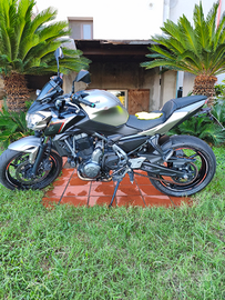 Vendo Kawasaki z650 del 2018, con 30.000 km, sempre tagliandata, scarico mivv laterale, frecce led e portatarga non originale, luci led anteriori, no pista, gomme sostituite ad aprile 2025, sostituzione paraoli forcella anteriore a giugno, tagliando effettuato 25/09, sostituzione catena pignone e corona 25/09, revisione effettuata a novembre 2024. vendo per passaggio di modello, la moto è disponibile per visionarla, sempre tenuta sotto un telo apposito, assieme alla moto fornisco: scarico originale, portatarga originale disassemblato, un kit nuovo pastiglie freno anteriori, e telo per copertura.
