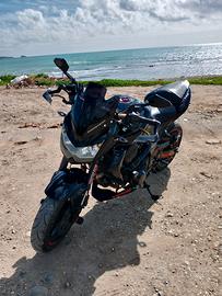 perfetta, mai avuto problemi, modello Total black con scarico SC project. Compreso nel prezzo treno gomme Bridgestone e tagliando fatto. attualmente 60 Mila km. depotenziata guidabilità con Pat. A2.