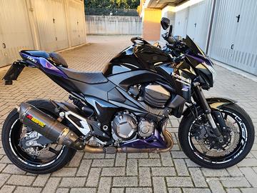 Vendo Kawasaki Z800 ABS del 2015, Io sono il secondo proprietario la moto è stata riverniciata per gusto personale, mai caduta mai incidentata dispongo delle foto prima di essere riverniciata, ho e do tutti i pezzi originali marmitta specchietti porta targa frecce eccetera la moto monta terminale akrapovic omologato indicatore di marcia e monoposto, maniglia passeggero sul serbatoio, cupolino nero..1.500 km fa è stata fatta catena corona pignone ed è appena stato sostituito olio motore e filtro olio.le foto parlano da sole il prezzo e leggermente trattabile.