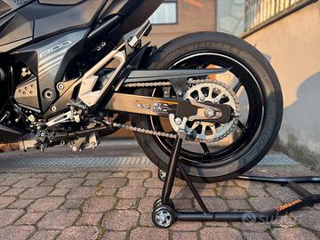 Vendo per passaggio a cilindrata superiore splendida Kawasaki Z800 SE, è la versione speciale Z800e ABS Special Edition, depotenziata a libretto e guidabile con patente A2 (35 kW). Attualmente è in configurazione potenza piena da 95 CV, ma completamente ripristinabile a 35kW. Special Edition: è la versione speciale celebrativa dell'ultima serie del modello, caratterizzata dalla livrea limitata Metallic Spark Black, dischi freni maggiorati, scarico Akrapovic di serie e finiture in carbonio. Immatricolazione e allestimento eseguiti da rete ufficiale Kawasaki Luciano Moto a Casalgrasso (CN). La moto è in condizioni impeccabili: tenuta maniacalmente, mai caduta, mai visto la pista, usata solo per giri domenicali e sempre tenuta in box con mantenitore di carica. Tagliandata, monta gomme nuove Metzeler M9 RR bimescola, è pronta all'uso da subito. Manutenzione sempre eseguita regolarmente, ultimo tagliando completo comprensivo di: candele nuove, filtro aria sportivo e sostituzione olio freni. Full optional con oltre 2.000 € di accessori: - scarico completo Akrapovic omologato con terminale in carbonio - cambio elettronico (Quickshifter) Healtech Electronics regolabile tramite app - dischi freni maggiorati - filtro aria sportivo Sprint Filter - sospensioni anteriori irrigidite e mono regolabile - tamponi paratelaio, portatarga, frecce LED e altri accessori marchiati Lightech - protezioni motore in carbonio - protezioni radiatore e serbatoio antiscivolo Revisione valida fino a Giugno 2027. Disponibili ulteriori foto dettagliate e video del mezzo, per ulteriori informazioni non esitate a chiedere: telefono/Whatsapp Federico 3347772829.