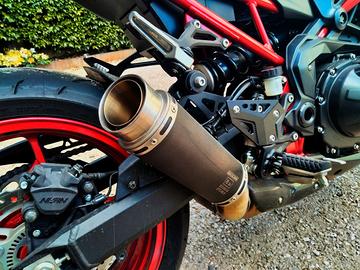 Vendo la mia Z900 perché purtroppo non riesco a guidarla abbastanza. È sempre stata parcheggiata nel garage sotterraneo e non ha mai subito incidenti né cadute. Tutte le modifiche sono state eseguite dal rivenditore specializzato prima dell'acquisto. Tutti gli interventi di manutenzione sono stati effettuati da un'officina Kawasaki. Condizioni eccellenti. - Anno di costruzione 2021, prima immatricolazione 07.2021 - 125 CV - 4300 km (il chilometraggio potrebbe variare leggermente, poiché la moto è ancora in uso) - Scarico Bodis - Leve freno/frizione regolabili Raximo - Indicatori di direzione mini - Portatarga corto - Specchietti alle estremità del manubrio - Ultimo tagliando a marzo 2025 con 3816 km - Pneumatico posteriore nuovo (aveva un chiodo conficcato)