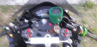 Monta ...carena racing ,scarico completo leovince,gas rapido robbymoto...pedane arretrate robby moto pompa Brembo 19/18 più regolatore a sx...forcelle bitubo e mono ohlins...radiatore maggiorato febur...doppi cerchi completi di dischi...ammortizzatore sterzo ohlins...cavo più programma cambio mappe...