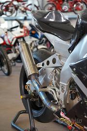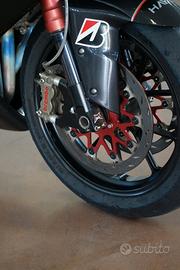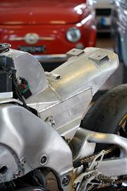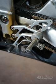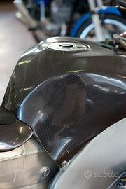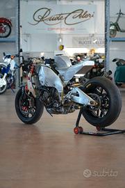 Kawasaki ZX 10 1000cc - anno 2004 Perfettamente funzionante. Alla moto sono stati eseguiti i seguenti lavori: motore stock, scarico completo in titanio Shark, filtro aria racing lavabile, forcella Marzocchi diametro 50, piastre sterzo ricavate dal pieno, pedane Robby Moto, pompa freno anteriore Brembo 19x18 con pinze freno anteriori CNC P4 32/36, pompa freno posteriore stock con pinza monoblocco CNC P2/34, freno posteriore al pollice con pompa monoblocco, dischi freno anteriori Alth su misura e disco freno posteriore Alth su misura, cambio elettronico, impianto elettrico semplificato, cerchi Marchesini forgiati in alluminio, serbatoio benzina artigianale su misura, reggi sella artigianale su misura, telaio con attacchi motore integrati, forcellone Febur SBK team PSG-1, mono ammortizzatore Öhlins TTX 36 e ammortizzatore di sterzo Matris. La moto ha percorso in totale 45.727 km, dei quali 45.200 su strada. Monta batteria nuova, con olio motore e filtro olio appena sostituiti. È presente la visura, che certifica targa e telaio, oltre alla radiazione per demolizione in Comunità Europea. Possibilità di visionare il veicolo presso la nostra officina; per maggiori informazioni visitare il nostro sito internet oppure tramite contatto diretto: Responsabile Moris Pelizzoni moris@ruoteceleri.it RUOTE CELERI Salone e officina al servizio del collezionista Offriamo servizi di vendita, manutenzione, restauro e personalizzazione di auto, moto e trattori d' epoca. Sede: Via del progresso, 31 - 36025 Noventa Vicentina (VI - Vicenza).