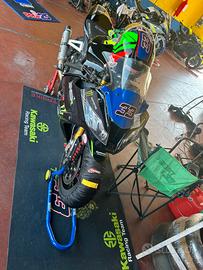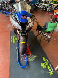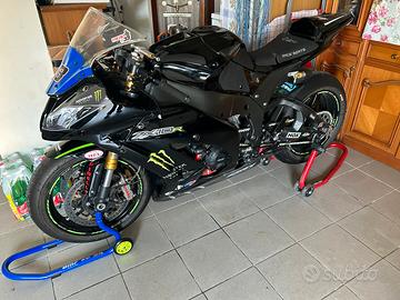 Vendo Ninja zx 10r anno 2015 con foglio di costruzione da parte di Kawasaki per immatricolazione ( esente bollo e passaggio all'atto della vendita perché mai immatricolata ), provenienza Team Pedercini ( atto di vendita )allestita full Racing per allenamento ed uso amatoriale. La moto ha eseguito tutti i lavori di manutenzione ed aggiornamenti vari per renderla sempre più affidabile e non avere problemi nell'arco delle giornate in pista ( fatture con tutti i lavori fatti e gli aggiornamenti eseguiti fino ad oggi ). Monta tutte componenti Racing di primissimo ordine che di seguito vi riepilogo :-carene Vtr Racing by krt - strumentazione l2m con gps integrato e cover in carbonio di protezione , possibilità di montare sensori per la telemetria su tutte le componenti della moto - pompa radiale brembo rcs 19-gas rapido domino - tubi in treccia allegri- tubi siliconici raffreddamento rapido- ammortizzatore di sterzo ohlins - cartucce ohlins fgk - mono ohlins ttx - dischi Racing super sport - pinze brembo m4 con pastiglie Racing zcoo -kit viti sgancio rapido -protezioni componenti motore by gb Racing - protezioni carbonio r&b serbatoio + grip laterali -collettori Racing e terminale sc - centralina krt - motore factory con aggiornamento albero motore 2018 ( dal 2011 al 2015 hanno riscontrato un serio problema dovuto al precedente albero che tendeva a sbronzinare ) , catena distribuzione nuova , bronzine nuove ed un sacco di altri lavori fatti 2 anni fa ( tutto dimostrabile tramite fattura dei lavori )- gomma posteriore nuova messa L'anno scorso ed effettuati solo 2 turni e gomma anteriore al 70 % entrambi Pirelli sbk sc 1 - tamponi para telaio r&b - pedane arretrate light tech - cambio Racing ( 1 su e le altre giù ma si può mettere anche normale girando solo la leva ) con blipper by Peppe Russo - sella Race seats by team pedercini- radiatore Racing -kit trasmissione Racing con pignoni e corone per varie rapportature in base alla pista dove si gira!Continua.......